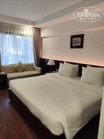 Номер сначала у нас был с видом на дорогу и ночью было шумно, мы попросили нас переселить, и через день мы переехали в номер категорией выше, ближе к морю без всяких доплат. Сотрудники ресепшен очень приветливые, связывались с нами по ватсап, а при выезде вручили подарок в виде домашних печенек. Также у них можно было поменять валюту по курсу не хуже, чем в обменниках (у гида от ТО Библио Глобус курс был высокий, на трансфере он всех напугал, что в обменниках будут поддельные купюры и почти все в автобусе поменяли у него, не ведитесь на это).