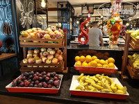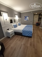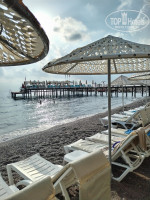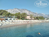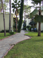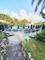 Отдыхали в отеле с мужем в сентябре. В Турции отдыхали 15 раз. Прилетели рано утром, до отеля ехали не больше 30 минут, наш отель был второй по дороге. По приезду, переоделись в туалете на ресепшен, чемоданы оставили на улице, работник на ресепшен говорил только на английском и турецком, мы поняли только про завтрак, на который и отправились. После которого пошли на море. К 10 часам подошли на ресепшен, где уже работало много специалистов и которые говорят по русски, спросили про номер и о чудо, сказали через пол часа можно будет заселиться, ещё попросили номер поближе к ресторану и бассейну и нас заселили в 7 корпус. Хочу выразить огромную благодарность работникам ресепшен за доброе отношение к гостям отеля. При любом обращении к ним, все решалось очень оперативно, только надо было успевать пока работали русскоговорящие. Не работал кран и вытяжка в душевой, сразу отправили работников, все починили. При выезде из отеля попросили отправить электрокар, отправили. Территория отеля зелёная, по ней гуляют курочки и цесарки, много кошек. У нас был номер стандарт, на втором этаже, достаточно просторный, на балконе стол и два стула, но когда пошёл дождь, крыша балкона оказалась дырявая и все вещи, которые сушились намокли. В номере есть чайник (не работал, сразу заменили), пополняют каждый день чай, кофе и сахар, воду в бутылках. Мини бар только при заезде (сок и газвода). Кровать и подушки мягкие, есть тонкие одела, тк кондиционер дует прямо на кровать. Можно открывать балкон, есть сетка, но будет шумно. Сейф бесплатный, одноразовые тапочки. В туалетной комнате душевая кабина и очень прикольный душ. Мыло, шампунь и гель для душа налиты в диспенсеры, хотя потом у горничных на тележке увидели в тюбиках одноразовых и кругленькое мыло. Оказывается если попросить через ресепшен, то тебе принесут. Странное обслуживание. Полотенца потрепанные временем. Уборка как во всех отелях и странах, я на этом никогда не зацикливаюсь. Бассейны теплые, много лежаков и зонтиков, есть зоны для детей. На пляже лежаков тоже достаточно, два пирса, море было чистое и тёплое. Заходить лучше с правой стороны, если стоять лицом к морю, с этой стороны заход расчишен от больших камней, заход мелкая галька но я все равно брала тапочки, мне в них удобнее. На пляже есть круглосуточный бар. Теперь о минусах: долго искали где туалет находиться, ни каких указателей. Оказывается за рыбным рестораном надо идти по тропинке вверх. Работник пляжа вообще не хочет работать, ни лежаки и столы протереть, ни мусорки очистить, ни песок с дорожек убрать. Снек бар работает по меню, можно заказать пицу, картошку фри, куриные ножки в кляре, пасту, салат. Ели иногда, вкусно. Спасибо женщинам, которые пекут гезлемэ, очень вкусные и почти никогда нет очереди, потому что они работают вдвоём и слажено. На баре официанты тоже молодцы, быстро обслуживают. Всегда есть орешки к пиву. Ещё есть кондитерская, где можно взять мороженое, вафли, кофе. Про ресторан-питание хорошее, фрукты были в большом ассортименте: яблоки трех видов, апельсины, виноград двух видов, груши, сливы, нектарины, персики, бананы, дыня, арбуз, правда который иногда пропадал то на обед, то на ужин. Были морепродукты в салатах, лосось запечённый целиком и стейками, язык говяжий, баранина и говядина запечённая большими кусками, перепелки, индейка, курица, на г