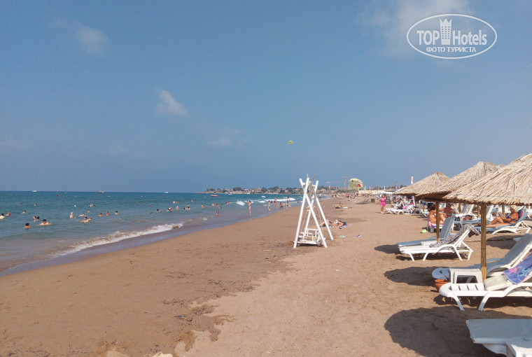 Мы конечно же знали, что море далеко, но здесь пишут что до моря 1000 метров - это откровенная ложь! Если был бы километр до моря, то люди бы спокойно доходили бы пешком. А здесь дойти вообще нереально! Ходит 1 шатл по расписанию, шатл это старый большой автобус тёмно-красного цвета и он едет по городским улицам, а потом по бездорожью к пляжу 10 минут, со скоростью 40-50 км в час. В итоге до пляжа 6-7 километров! С детками точно не дойти. Людям приходится набиваться как селёдки в этот шатл, стоять впритирку к друг к другу. И когда водитель видит, что уже автобус набился туристами под завязку, он сразу отъезжает и часто раньше указанного времени. Люди стоят впритык и детки тоже. А многие ещё остаются ждать следующего времени. А для чего приехали спрашивается ?! На море! А на него добираться с таким трудом ?! Зачем тогда платить такие большие деньги за этот отель?! Про пляж...Море есть море, оно всегда прекрасное. Но много водорослей и мутная вода, наверное потому что песок под ногами. На пляже много мусора и в воде тоже много чего плавает. Под ногами постоянно находили разные вещи, выносили и отдавали в бар на пляже. В баре на пляже стоят кулеры с водой и искусственными напитками. Приносят арбузы иногда и дыню. Но вилок и тарелок нет. И многие стоят над этим подносом и едят арбуз, а сок и слюни текут на другие куски - негигиенично и неприятно, мы обходили такое угощение стороной. Отношение как к поросятам, иначе не скажешь. Обратно опять на шатле, временами шатл ломался и задерживался. Это не спокойный отдых на море, это постоянная зависимость от шатла, не расслабишься.