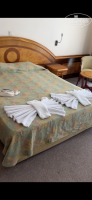 При заселении дали денежку, надеялись на корпус А, но нет. Поселили в корпусе через дорогу. Расстроились, но оказалось, что от номера до моря занимает 3 мин времени. Везде пандусы. С коляской максимально удобно. Даже на пляж есть пандус. Номер 2201. На 2 этаже. Мебель старая, но все работало. Нареканий не было у нас. Кровать 1-сп только скрипела. Просили починить- ничего не сделали. Матрасы неплохие. Дорогу слышно, но не критично. Кондиционер не включали. Каждый день давали 1,5 л воды. Сейф платный. Холодильник работал. Убирались стандартно. На полу ковролин .