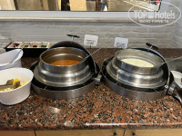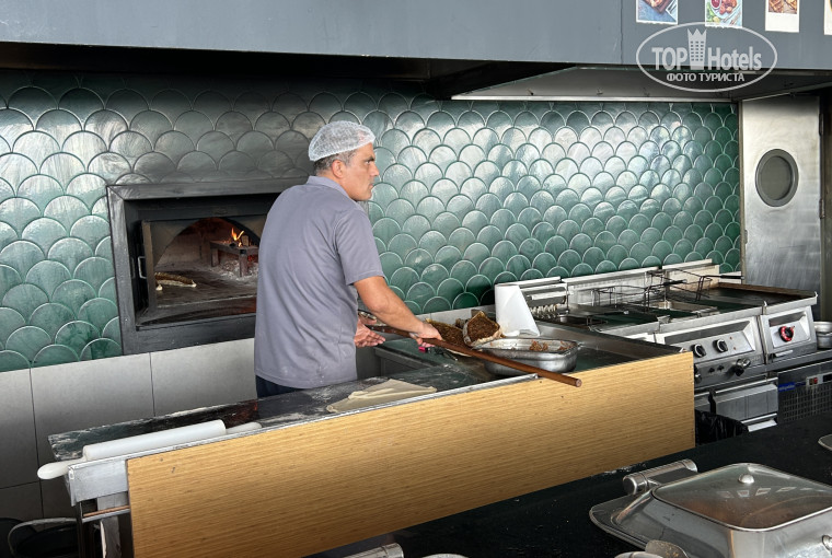 Разнообразие горячих блюд небольшое. Но все вкусно. Всегда можно найти, что покушать. Утром на террасе день через день жарят яичницу/омлет. За 12 дней 1 раз были блины с шоколадом. Если погода плохая, то терраса закрыта, соответственно, ничего не жарят. Вечером на гриле жарили шашлыки, котлетки, курицу. Из мяса всегда курица, индейка. Неск раз тушили говядину. Из фруктов в это время года вкусные мандарины, апельсины, грейпфрут. Давали также дыню, арбуз, виноград, сливу, яблоки, груши. 1 раз персики (жесткие). Вкусные десерты: пахлава, в сиропе, а еще всякие эклеры, пудинги , желе, суфле. На обед и ужин по 2 супа. Напитки приносят официанты. Если не хотите ждать, сами подходите к бару. Соки из пакетов, Миррнда, спрайт, кола, Липтон, айран. Официанты стараются все быстро убирать, стряхивать, накрывать. Посуда старенькая. Встречались пару раз грязные стаканы, но это бывает. Видела, как официантка уронила вилку и обратно положила на стол. Но мы всегда протирали перед едой их на всякий случай.