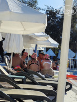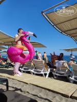 Море - теплое, прекрасное! Вода чистая! Купаться ходили чуть правее, в сторону "Миража", потому что там лучше и плавнее заход и нет булыжников. Иногда штормило, но и на волнах можно было поплавать. Сам плаж - тесный и узкий, лежаки после 9 утра разбирают почти все.
