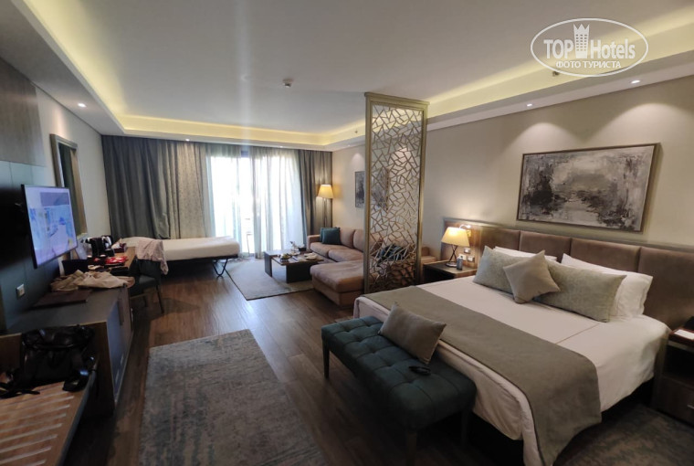Удачное расположение отеля. Всего 10-15 минут на машине от аэропорта, и вы на месте. Территория отеля достаточно большая, чтобы не толпиться всем в одном месте. А с другой стороны все расположено удобно и логично, поэтому маршруты море, бассейн, питание не занимают много времени. В отеле есть новая часть, в которой есть уже построенные здания с номерами и которая сейчас активно застраивается новыми сооружениями.