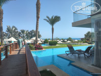 Есть три группы бассейнов: первая группа - самая популярная - возле моря там по моим ощущениям вода самая тёплая. Там же и основная анимация. В этих бассейнах есть типа джакузи, но вода там без подогрева. Вторая группа возле сороковых корпусов (40-43). Там народу гораздо меньше и вода там прохладнее. Там тише, спокойнее, прохладнее. И ещё есть группа бассейна в новой части через дорогу от ресепшен. Там можно сказать, вообще народу нет. Мне показалось, что там более ветрено, чем в других частях отеля.