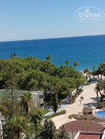 Вид из номеров левого крыла, на мой взгляд лучше, но по вечерам здесь более шумно. Под балконами правого крыла расположены блоки кондиционеров, вытяжка с кухни ресторана и хоздвор отеля, вид тоже не плохой (если не смотреть вниз), зато гораздо тише.