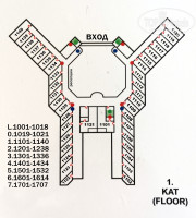 1-й этаж: номера 1101-1140 ( 1102-1120 левое крыло, 1122-1140 правое)