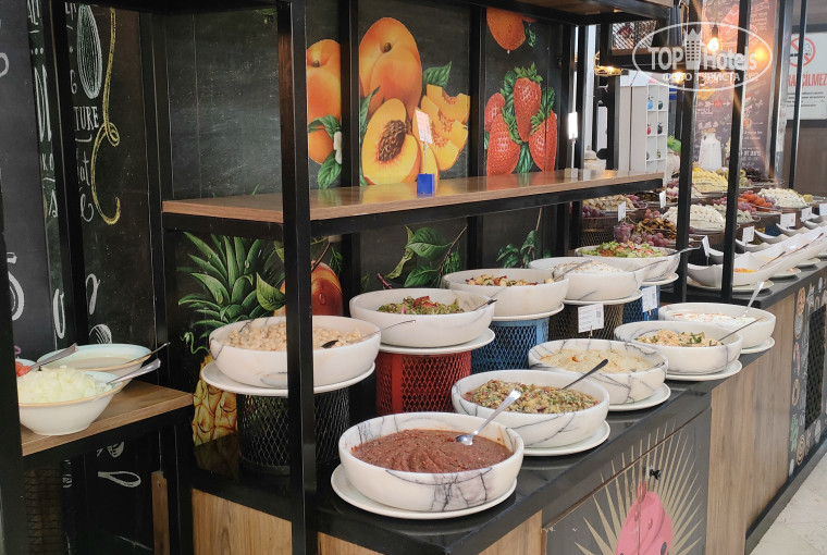 Территория отличная, до моря идти одно удовольствие ( считаю что трансфер до моря там не нужен совсем). Питание тоже понравилось, особенно завтраки! Хороший фастфуд. Сладости не очень,но честно говоря это и к лучшему - не влезло бы уже если честно... В бассейне вода холодная уже, но окунуться можно...Море просто отличное! Каждый день разные шоу, но для нас очень поздно начинались ( в 21: 45).