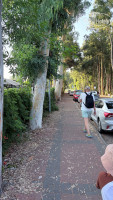 Во дворе за рестораном большой зеленый газон с местами куда можно присесть. Вечером дети носились там.
