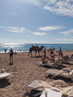 Пляж широкий песчано-галечный, лежаков много, столиков и горшков мусорных мало. Засранцы коты гадят в песочек, сгоняли их, когда видели. Вход сразу глубоко. Коралки нужны это точно!. Мы размещались около границы с Астерией (халявный вай-фай), соседи приходили к нам поплавать, говорили лучше, чем у Астерии заход. На пляже так же кафе: гриль, бургеры, фри, пицца, гезлеме, салаты, фрукты-овощи, напитки, айран в стаканчиках. Предлагают развлечения на воде, банан, парашют, ватрушка (платно). Анимация только воллейбол отрабатывала (олл инклюзив).
