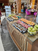Питание очень разнообразное! По приезду пришли на ночной суп, и сколько были в пятерках ночной суп это собственно он сам и сухарики. Здесь же был полноценный ужин - гарниры и горячие блюда. Выбор еды огромный, все не попробовали. Картофеля насчитали только 5 видов, как в том кино - фри, пюре, запеченная 2 вида, в жарком резаная и круглая. Рис, макароны, тушеные овощи. мясо представлено курицей, индейкой, говядиной и бараниной так же в разных вариациях. Свежие овощи и зелень - восторг! Зелень букетами , томаты черри + резаные. Оливы 6 видов, если не больше. Фрукты - яблоки, сливы, виноград, апельсины, мандарины, так же дыня и арбуз. Всевозможные соления. Рыба была на гриле типа скумбрии, очень костлявая, трудно такую есть. Готовили пасту под заказ с очень эффектным фламбе. Рядом типа ролл шаурма, но невкусная, заворачивали в круглую лепешку фарш, овощи и это не запускали на гриль, так и на тарелку отдавали.