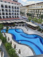 Отдыхали в данном отеле в октябре, когда море теплое, днем солнце ласковое, а вечерами уже прохладно, очень комфортно для прогулок. В отель приехали ночью, нас разместили, помогли подключиться к Wi-Fi, на всей территории отеля и на пирсе хорошего качества. Номера очень компактные, у нас был стандарт с балконом с видом на бассейн, все работало, интерьер порадовал, понравилась задумка с панелью в которой находится телевизор. Сейф оказался приличных размеров с розеткой внутри. Бар пополнялся ежедневно.