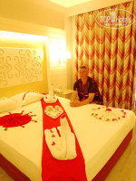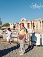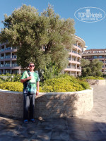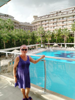 Отдыхали в отеле с 7 по 15 октября 2025 г.Ваучер 4297488-для правдивости. Приехали в 9 утра,от аэропорта со всеми заездами и остановкой-примерно полтора часа.Браслеты одели сразу,отправили на завтрак,огромный выбор еды,все красиво и уютно,большой добротный и чистый главный ресторан,расторопный внимательный персонал.Порадовало обилие халвы-я ее обожаю.Места всем хватало,несмотря на большое количество гостей-отель был заполнен под завязку.Есть огромная терраса на воздухе-там можно курить,что для нас с женой было очень кстати,расслабились после утомительного перелета с неограниченым количеством неплохого кофе и соков.Соки такие же как у нас в пакетах,ничуть не хуже-пусть некоторые не врут,что порошковые.После завтрака пошли на рецепшен узнать насчет номера-велели подождать еще полчаса.Пошли осматриваться и узнавать где и что.Территория отеля довольно большая-есть где погулять.Все утопает в зелени,красивая ухоженная смотровая площадка,интересная архитектура самого отеля-два корпуса в виде огромных запятых,с видами на все четыре стороны-на море,на восток и запад и на поселок и горы вдалеке.Большой основной бассейн с островом посередине.На нем расположен бар со вторым этажом,там хорошо видно всю территорию отеля.Мест везде хватает,правда в баре почти всегда очередь,так как гостей очень много,второй бармен часто отходит.За всем этим хозяйством находится второй ресторан со своим баром-туда можно и в купальниках.Работает с утра до вечера,а бар-круглосуточно.Еще чуть дальше и вбок детский и взрослый аквапарки-не очень большие,но очень даже полноценные-работают по расписанию.За аквапарками два прохода в амфитеатр-там проходит вечернее шоу каждый день новое.Везде все чисто и ухожено,стоят холодильники полные бутылочками с водой,везде есть указатели направлений куда идти.Первое время терялись в ориентировке из-за необычной архитектуры,но быстро освоились.По дороге на пляж после мостика через маленькую речку метров двести-и вы на месте.Большой красивый пляж с пляжным полноценным рестораном и баром.При входе в воду имеется маленькая полоска из камней,особо нежным будет неудобно заходить в море.Глубина начинается довольно резко-метров через десять уже по шею-следите за детьми.Мест всем хватало-может не тех,которых хотелось бы,но они всегда были.Очень грамотное распределение гостей по территории-несмотря на полный отель не было скученности,всегда хватало столов и всего остального.Все это оставило хорошее впечатление от данного отеля.Про питание много писать не буду-оно замечательное,без особых извращений,но все очень вкусно и очень много-было решительно все,что угодно- от пончиков до морепродуктов.Перечислять долго и утомительно.Алкоголь в любых количествах и ассортименте-от пива до текилы и шампанского.Не премиум класса,но очень приличный-главное не злоупотреблять.Лично мне очень понравилось розовое вино (розе шарап)-вкуснятина!Все это оставило только положительные эмоции и добрые воспоминания.Возвращаясь к вышесказанному-вернувшись на рецепшен получили две карточки от номера и две на полотенца.Поселили нас в 1 корпусе на пятом этаже,номер 1531 с видом на поселок и горы-без каких либо доплат.Номер хороший чистый,хорошее постельное и огромный по турецким меркам балкон-хоть пляши.На балконе два стула и стол с пепельницей.Уборка 