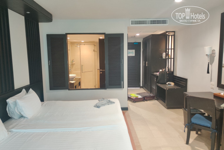 Обычный номер в тайском стиле, мебель и сантехника соответствует звездности и возрасту отеля - они не идеальные, с какими-то потертостями, иногда сколами, что-то где-то почти сломано и доживает последние деньги (как держатель душа, например) - все как обычно. Но это если с лупой рассматривать, так - пойдет. Белье чистое, меняется вроде не каждый день. Кондиционер мог бы и работать потише. Места для сушки вещей есть как на балконе, так и в ванной. Вместе с раздвижными дверьми могли бы и сетки поставить, но это видимо только в пятизвездочных отелях так. Приходилось не открывать балкон. Хотя один раз все-таки залетел один комар, но потом он быстро отправился в иной мир, и больше никакая живность меня не беспокоила. Фена нет, шампунь, мыло есть, тапочки резиновые (видимо многоразовые, а не чисто для конкретного постояльца), халат из материала как скатерть - лучше все свое везти.