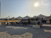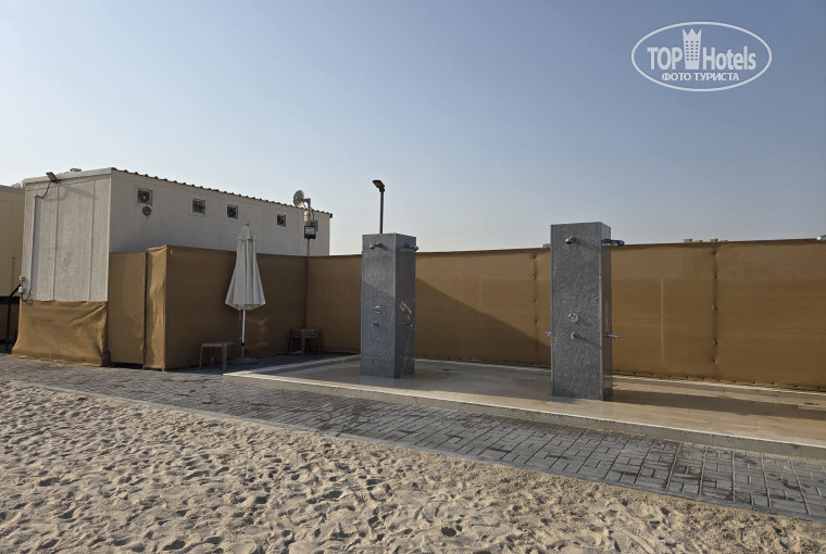 На пляже достаточное количество шезлонгов и зонтиков, открытых душевых.