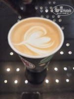 В баре на пляже чай, кофе из кофемашины, кола, спрайт в банках, вода.