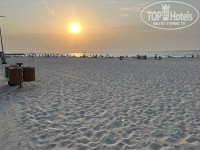 До пляжа 7-8 минут пешком. И 10 если хотите быть ближе к душу. Сам пляж великолепен! Чистый, красивый! Зонты по 30 дирхам за день, лежаки по 10. Кто-то брал, кто-то так, на песочке валялся. Несколько раз покупали проходки в отель напротив нашего, через дорогу, Карлтон. Там свой пляж, большой бассейн и музычка) не так грустно. Цена 35 дирхам. Это того стоит.