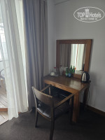 Номер свежий. Мебель в отличном состоянии. Есть холодильник, халаты, тапочки, швейный набор, стаканы, штопор, графин, бутылка 0,5 воды в стекле, чайник, стаканы, поднос, лопатка для обуви, телевизор (не включали).