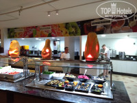 Ресторан большой, ни разу не было проблем с местами. Каждый день ассортимент немного другой, так что разнообразие присутствует. Днём у бассейна можно взять мороженое. Раз в неделю ужин происходит на пляже, и не лень же им таскать всё нужное туда-сюда..