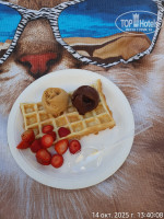 В детском клубе с 12 до 16 готовят вкусные вафли, подают с клубникой и бананом на выбор, так же можно взять фрукты и мороженое вкусное. Так же есть около бара на пляже вкусные бургеры, наполнение можно выбирать и спагетти. В баре на пляже есть фраппе, кофе в турках, и разное приготовление латте.