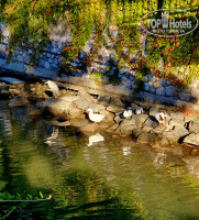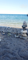 Пляж. на берегу возле лежаков песочек, вход в море камни, большие и неприятные, купались с пирса, на пирсе спуск слева удобнее (лестница шире) справа лестница узкая. Лежаков всегда всем хватало и на бассейне и на море, в октябре солнце не жгучее, сгореть не удастся даже под прямым солнцем без тента. Утром температура была в 9.00 - 24 градуса, в 15.00 прогревалась до 38 градусов, но не было изнуряющей жары, вода в море теплая, в бассейнах освежающая.
