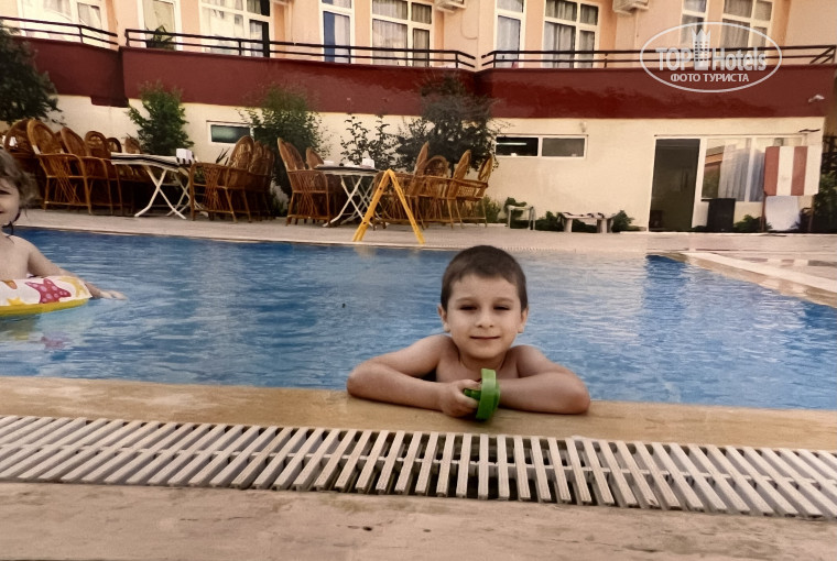 Это был мой первый отдых за границей, первый отель, где все включено. Сравнивать не с чем) Поэтому мне все понравилось))) Море шикарное, в него я влюбилась с первого взгляда!!! До него рукой подать! На пляже галька. Хотели съездить на пляж Клеопатры, он недалеко, но не получилось как-то... Брали прогулку на пиратской яхте, ездили в аквапарк, неплохо повеселились. Июль месяц оказался для меня слишком жарким, сгорели с сыном в первые же дни. Ребята из ресторана дали мне молочную сыворотку, чтобы облегчить ожоги! Спасибо им большое, помогло! По вечерам была анимация, ребенку нравилось))) Номер был небольшим со старенькой мебелью, два бассейна (взрослый и детский). Из питания было много овощей и зелени, особенно мне запомнился арбуз. Это был самый вкусный арбуз в моей жизни!!! В один из дней приезжал базар на соседнюю улицу, купила полотенце, платье и еще что-то... Продавцы угощали чаем и восточными сладостями. На территории отеля есть телефон, покупала карту и звонила домой в Россию. Неделя пролетала быстро, домой мы уехали загорелыми, отдохнувшими и счастливыми!!! Турция покорила мое сердце! В этот отель навряд ли я вернусь, но в эту страну еще и раз))) А работникам отеля от нас огромная благодарность за душевный прием!!!