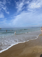 Пляж — песчаный, чистейший и очень красивый. Песок мягкий, золотистый, ребёнок с утра до вечера лепил куличики и строил замки. Вход в море комфортный: не слишком мелко, не глубоко, метрах в 10 от берега уже по шею (мой рост — 1,70 м).