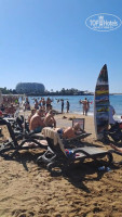 Отель забит бабками на 99%,они все время стоят в очередях,создают их и потом стоят.Прикол с лежаками,занимают несутся в 6 утра,тк пойти некуда ,коптятся там весь день или стоят в очереди в столовку,в которой нечего есть.Десерты из разморозки,одно и тж,есть невозможно.Чай -заварка тока их чайника.Тяжеловато.кровь из глаз.Приехал-хочешь полежать на пляже?не выйдет,все завалено полотенцами на нем камень и 50%нет людей.заняли-свалили