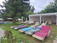 Пляж хороший, пологий и плавный заход, прекрасный песок на дне, нет ни камней, ни чего-то такого. Вода чистейшая при хорошей погоде. Шезлонги исправны, зонты тоже. Уборка на пляже на четвёрочку. Бар на пляже (довольно уставший): минимальный алкоголь, вода, кофе, газировки. Соков и тд ничего нет. Перекусы поймать невозможно, проще дойти до отеля и там взять пиццу. Пляжные полотенца - тонюсенькие, рваные, застираные позорные тряпочки. Даже в 3* дают лучше. Если любите нормальные пляжные полотенца, то берите свои.