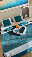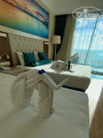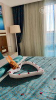 Так как мы уже не перный раз выбрали этот отель, я решила сразу обговаривать номер при заселении на ресепшен, все супер, нам дали номер с видом на бассейн. Номер просторный, Вид шикарный, радовал каждое утро. Питание очень вкусное, без излишеств, но креветки, раки, ролы были, если кто то это добро любит (приготовление у них отличается от нашего привычного), много сыров-очень вкусные. Вкусные пироженные в кондитерской. Красивый рыбный ресторан аля-карт, доча даже суп пюре рыбный съела, обычно она рыбу вообще не ест, там блюда были вкусные. Бар на пляжеи у бассейна под конец сезона с питанием немного скромнее, одни сосиски и нагетсы , и июне было мясо/курица жаренная очень вкусная. Бассейн конечно уже был прохладный и весь народ в отличии от июня чалился на море, так как мы приходили не с утра, а после 11, из лежаков что то находили или стелились на песке, а к 12 уже народ массово освобождал лежаки и уходили, нам солнце не мешало, под навесом оно полностью закрыто, море просто шикарное, теплое , ребенок не вылазил до самого вечера....только вечером возвращались в номер, искупаться перед ужином. Сам отель приятный, номерной фонд приятный, обслуживающий персонал тоже приятный, нам куртили фигурки в комнате , мусора у нас в номере не было, поэтому не могу сказать как часто нам делали влажную уборку, но постельное по моему меняли. Вечером проходит детская дискотека и потом вечерние шоу. Дискотека уже не работала, видимо тоже конец сезона повлиял. Отдых удался, все было так как мы и заплонировали. Единственное пожелание это сделать бассейн с подогревом)))