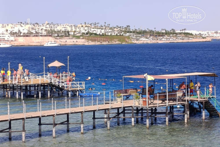 На пляже пирс и понтон. Пирс оборудован тентом, есть скамейки, полочки для обуви, можно оставить вещи спасателю. Есть огороженная часть и спасательные круги для неуверенных пловцов, есть два плота. Риф хороший, все рыбки бабочки и ангелы, попугаи и абудуфдуфы на месте. Иногда плывешь в большой компании, в глаза заглядывают. Несколько раз по утрам видели наполеона.