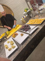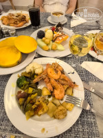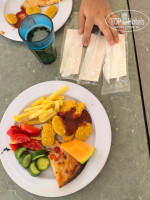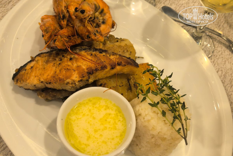 Выбор еды хороший, разнообразный, хотя редко меняется. Мы отдыхали 10 дней, раза 4 были ужины с морепродуктами (креветки, кальмары), но морепродукты в разные дни в отелях, если кому-то очень хочется, можно пройтись на ужин по всем и поискать то, что нужно. Познакомились с парой из Перми, они отдыхали в Аква парке, он говорят, что у них часто бывала красная рыба стейками, у себя видели только белую в панировке.