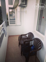 На балконе 2 стула, столик, пепельница, небольшая сушилка для белья.
