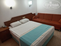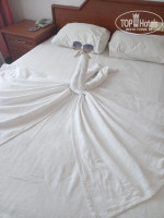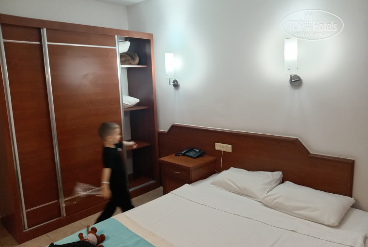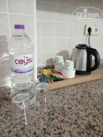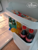 В номере мебель уставшая, но исправная. Очень хорошие матрацы на всех кроватях, чистое белое белье. В шкафу дополнительные 2 подушки и шерстяной пледик. В холодильнике при заселении 2 сока, 2 воды, 2 колы, 2 фанты. В номере также имеется чайник, кофе 2 пакета, чай. В последующие дни вышеуказанные приятности не пополнялись. Чай мы не пили, а вот кофейку не хватало. Воду приносят бутилированную 1,5 ежедневно.