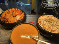 Кормят много, щедро и вкусно! Завтрак и ужин проходили в главном ресторане на -1 этаже, обед и перекусы снэками - на улице, под навесами и большими вентиляторами над головой (3 локации). Все вкусное, свежее, глаза разбегаются от изобилия (фото блюд приобщила). Из того, что не видела ранее в отелях Турции - подавали утку по-пекински с рисом и говяжий язык с картофельным пюре (порционно). Десерты - произведения искусства.