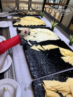 Здесь вы вряд ли будете выбирать что поесть, выбирать не из чего. Курица, противная рыба и какие-то фрикадельки. На завтрак мяса нет, только несъедобная колбаса неестественного цвета и какая-то копченая рыба. В первый день взяли ребёнку пюре, ладно хоть сами попробовали, оно оказалось кислое 🤦♀️ на обед курица, рыба, картошка, макароны и рис, мяса нет. Вкусные сладости только на ужин, в обед однотипные бисквитные пирожные. На ужин можно ходить в Аля карт рестораны без ограничений, но и там ничего вкусного не вы найдёте. Хотя нет, на пляже готовят барбекю на ужин - вот это единственная вкусная вещь🤤 есть картошка фри с бургерами в дальнем баре, до которого обычно никто не доходит. Соки пить невозможно (наливают из каких-то автоматов) - краска с сахаром, ничего натурального. Кофе хоть из кофейника, хоть из аппарата гадость. Если сядете кушать в детской зоне, то никто не принесет вам вилки и ложки, нужно просить много раз, салфеток на столах нет, только по 1 шт на человека. В барах попить дают в старых обшарпанных пластиковых стаканах, одноразов посуды нет. Очень много посуды со сколами. Если вы хотите вкусно кушать на отдыхе, то вам точно не сюда. Чашки грязные, круассан вообще был с мухой 🙈
