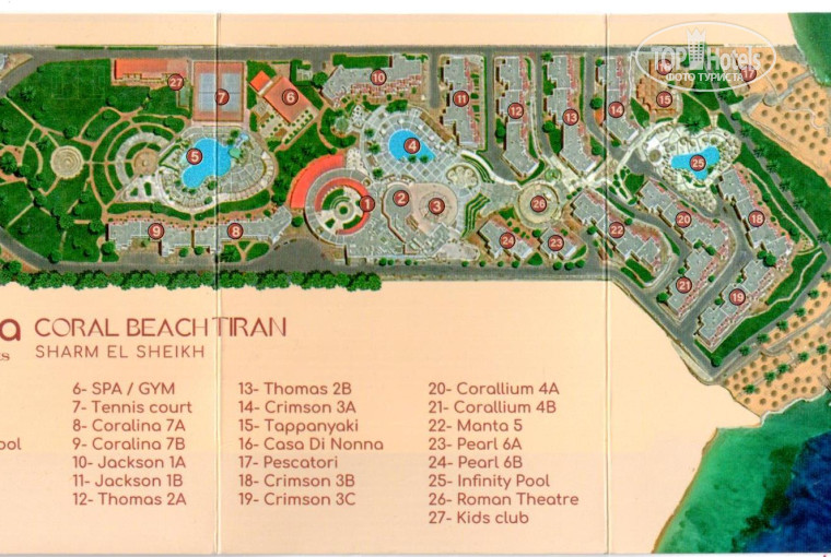 Я ездил туда с женой и дочкой 7 лет. Приехали в отель примерно 16:30-17:00. Оформление не заняло много времени (в рамках 30 минут). В это время можно чего-нибудь выпить в баре рядом с ресепшн. Браслеты не одевают - и это приятно. Приложил карту отеля со всеми точками к отзыву. Нам дали номер в 10 корпусе (Jakson 1A). Так как номер был с видом на бассейн я решил попросить тот самый "апгрейд лояльности" для первых туристов. Меня убеждали, что этого не существует, что отель якобы заполнен (это конечно не так), но после некоторого количества переговоров всё-таки дали другой номер. Дали номер 2118 в 12 корпусе (Thomas 2A) на карте. Вид на море - отличный. Номера вроде бы все после ремонта, но много строительной пыли. Я отдельно и долго добивался именно влажной уборки. Когда едешь с ребёнком - это особенно важно. Старинные маленькие сейфы якобы во всех номерах. В душевой не всё хорошо с горячей водой, но если слить воду (подождать пару минут) - будет приемлемо. В душе как не закрывай всё равно текут лейка, кран. Будет капать постоянно. Хотя по виду всё новое.
