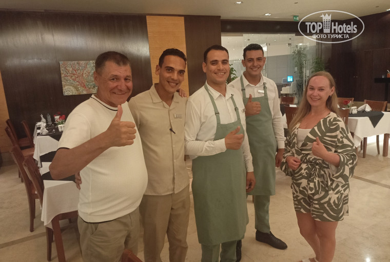 Отдыхали в Cleopatre с 7.10.25 по 20.10.25 г.Прошла неделя после отдыха.эмоции успокоились.теперь можно написать отзыв об отеле.Приехали в отель мы где то к 12 часам.сдали документы на заселение.Встречал нас работник ресепшн Ахмет.Выслушал все наши пожелания и отправил пообедать.Мы бронировали номер с видом на сад,попросили не шумный номер.Минут через 15-20 после обеда нас уже проводили в номер 1133.Это как бы правое крыло основного здания,3 этаж.Номер очень понравился,с балкона открывался прямой вид на море и край отеля Рихана.До поездки читали много отзывов,смотрели ролики обзора отеля.В телеграмм подписался на чат отельный,где люди делились своими впечатлениями.Многие писали ,что нет в номере тапочек,зубных щеток.Поэтому везли все с собой.Были приятно удивлены ,что все в номере было.Халаты,тапочки,бритвы,зубные щетки,паста в небольших тюбиках.Все менялось,пополнялось по мере необходимости.Не успели еще толком разложить вещи стучат в дверь,парень который убирался в номере принес утюг.Я еще посмеялся,говорю жене зря везли свой.Мы всегда берем с собою маленький,походный такой.Так этот отельный утюг и пролежал в шкафу до конца нашего отдыха.Номера просторные.Присутствует чайник и набор чая.кофе.Про телевизор и какие программы не знаю.Не разу не включали.Кондиционер работал хорошо.Дают две карты от номера.Но в слот куда вставляют карточку ,что бы был свет можно вставить любую другую и приходя в номер вас будет ждать прохладная комната.Отдыхали мы в основном на инфинити бассейне.Там спокойно,тихо.Вся движуха на первом бассейне,где бар как островок .Что понравилось ,что ни кто не бежит с утра пораньше занимать места на лежаках.Мы после завтрака ,ближе к девяти шли и наверное половина шезлонгов было свободно.Когда спускались на пляж ,то тоже видели много свободных лежаков.Ребята которые работают у бассейна ,всегда готовы помочь .Через пару дней мы уже со всеми познакомились и с утра встречались как с давними друзьями.Хочу отметить работников бара,которые обслуживают гостей отдыхающих на этом бассейне,вот кто трудиться как пчелка.Целый день они по жаре разносят напитки.Запоминают кто что предпочитает.Мы пили только пиво,так что про другой алкоголь не смогу ни чего сказать.Саид и Мустафа уже только по взгляду нас понимали.молодцы,честно говорю.сервис на высоте.На бассейне пиво наливали в баре из кег,а в лобби баре бутылочная стелла.Теперь насчет моря.Почти все дни были волны.Ну это особенность этого района.Пляж не сильная сторона отеля.По левую сторону ,ближе к отелю Нубиан. есть небольшая лагуна.Там можно поплавать с маской,правда пока нет отлива,будет где то по пояс.Ну мы были к этому готовы,т.к.уже многое знали про отель.Теперь по питанию.Завтраки стандартные,яичница,омлет.сосиски.какие то каши.выпечка.На обед и ужин мы ходили в основной ресторан.Мне понравились супы-пюре,и бульоны.Бульоны прям наваристые,остренькие.По желанию можно дополнять разными овощами,сухариками,специями все стоит рядом,на любой вкус.Я особо не экспериментировал,брал привычную для меня еду.Рис,картофельное пюре с добавлением чего нибудь мясного.А выбор из мяса есть всегда.Есть отдельная станция ,где нарезают от больших кусков по вашему желанию сколько вам надо.Каждый день что то новое.Была индейка,утка,говядина,баранина.В дополнение есть несколько мясных блюд типа гу