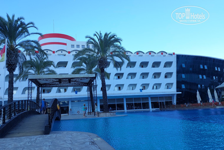 Сам отель уставший, но все чисто, все работает. Очень красивый вид из панорамных лифтов. На первом этаже в носу "корабля" можно покрутить штурвал, детям нравится. WiFi работает по всей территории, но в часы перегруженности может отвалиться. Бассейны - детский лягушатник, взрослый большой, глубиной 1,6м(или 1,4м, не помню) и при водных горах глубиной 1,2м. В октябре конечно хотелось бы бассейн с подогревом. На -1 этаже есть бильярд, приличные детские "лазилки", игровые автоматы, боулинг, крытый бассейн (если холодно) и сауна. Есть так же спортзал, маленький, размяться можно. Отель больше подходит для семейного отдыха, спокойного, если хотите ночной жизни, то возможно вам он не подойдет.