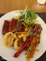 На обед и ужин изобилие еды ещё больше! На ужин один раз даже были устрицы,что вижу впервые в отелях! Лосось жареный на гриле,мясо на шпажках,люля кебаб ,тунец обжаренный до медиум велл,кальмары, подкопченый лосось и на завтрак и на обед и на ужин. Изобилие десертов поразило,их столько,что не перепробовать и за месяц!