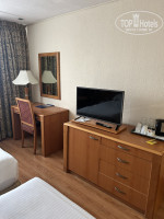 Номер скромный, но все есть и очень чисто. В номере телевизор, холодильник, кондиционер, сейф, чайник, чай черный, кофе и сухие сливки, вода 1,5 литра ежедневно, есть шампуни, гель для душа, крем для тела, мыло, щетки и пасты нет (я брала с собой) белые полотенца (пляжные выдают отдельно), фен. Уборка каждый день. Хороший Wi-Fi