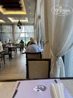 ужин сытный, всегда есть курица, мясо и рыба, были креветки (на шпажках и в плове), суп, салаты, разные гарниры, очень вкусный хумус, овощи ,фрукты, десерты, чай. Ресторан красивый, панорамные окна, все очень чисто, даже стекла. Отдельно хочется отметить сервировку столов и официантов, очень внимательные, вежливые, красиво одетые, присутствует ощущение, что уровень ресторана.