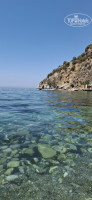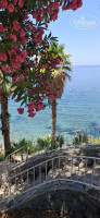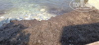 Пляж: Как такового пляжа нет. Есть небольшой кусочек песка с камнями и ракушками и огромной кучей из водорослей. Вход в море с этой стороны возможен, но не очень безопасен, так как на дне булыжники. С левой стороны оборудован пляжный бар, несколько столиков, шезлонги на песочке и водные развлечения. Вход в море с лесенки, полметра от лесенки и сразу глубина. Возле лесенки всегда люди. Вода достаточно прохладная, соленая, волны в наличии.