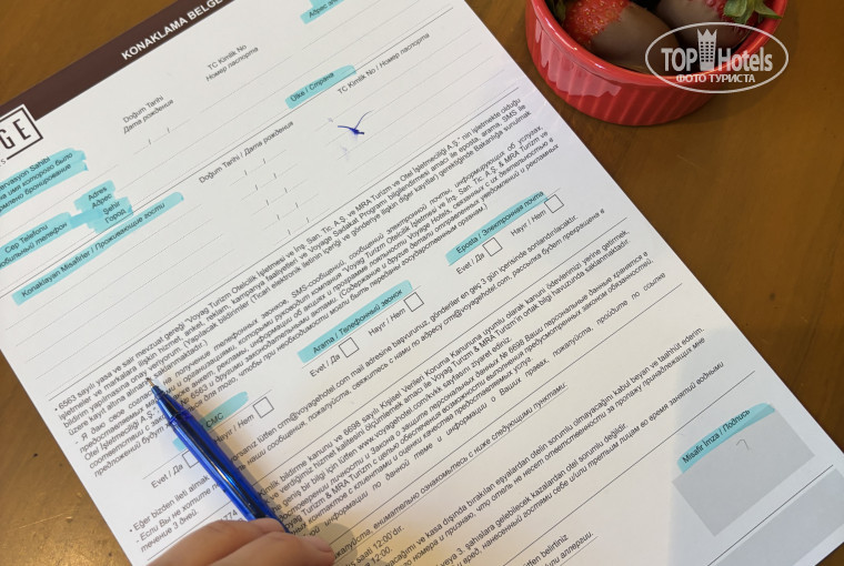 На ресепшене встретили ассистенты,дали заполнить форму,предложили напитки и клубнику в шоколаде.Далее пошли гулять в ожидании номера.