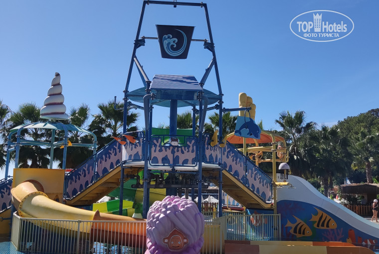 Компактная, но продуманная, всё необходимое есть: три бассейна на улице (один подогреваемый), аквапарк, детский клуб, ресторан на улице, где можно полноценно пообедать, площадка для активностей, пляж и понтон.