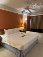 Нам дали номер на 2 этаже. Есть лифт. Номер просто роскошный: просторный, огромная кровать, удобный шкаф для одежды, тапочки, зубной набор и прочее необходимое. Особенно понравился ароматный увлажняющий гель для душа с ароматом франжипани. Помимо кровати в номере диван для отдыха, стол с письменными принадлежностями. На балконе стол и 2 кресла. Вид на бассейн.