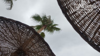 На пляже несколько общих тентов и несколько штук плетеных зонтиков. Пляж довольно узкий. Спасало то, что пляж справа был "свободный" (видимо отель уже закрылся на зиму), а когда и слева отель закрылся - стало совсем просторно. В сезон наверняка будет тесно. Особенно ловить солнце/тень передвигая лежак...