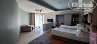 Приехали в отель утром в после 7. На рецепшене специально стояли к русской женщине Марине (из Перми) сразу спросили про 2х комнатный номер. Номер нам нашли, скидку дали. Доплатили 400€ за 9 ночей. Принимают только евро, чек дают. Были 3мя семьями, остальным дали номера по путевке ближе к 11 при полной загрузке отеля, с видом на бассейн.