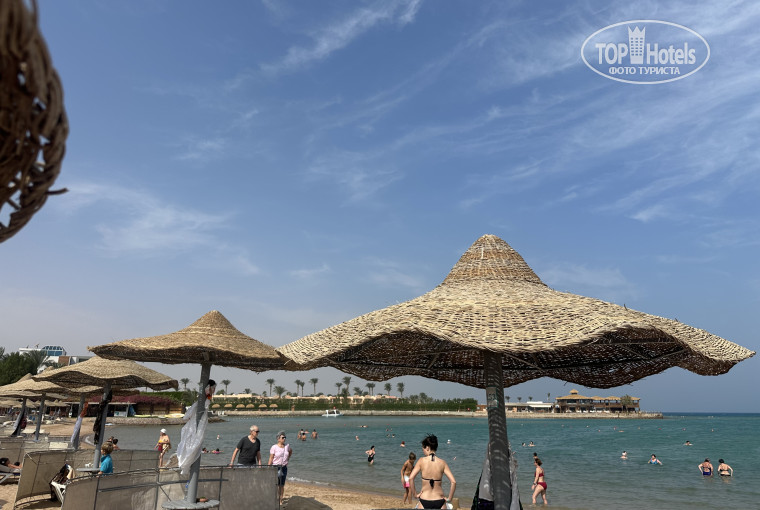 Пляж широкий, чистый, с мягким заходом в море — идеально для малышей. Есть понтон для любителей поплавать среди рыбок, кораллы рядом. Территория отеля ухоженная, зелёная, много цветов и пальм, всё освещено и красиво оформлено.