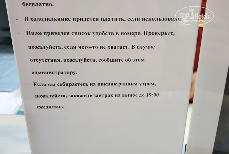 Оценка сервисов отеля автором