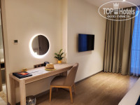 Отель хороший, приятный персонал, прекрасные завтраки. Номера нормальные, просторные. Центральный кондиционер, почти бесшумный и не дует на кровать. Некоторое неудобство доставило отсутствие полок в шкафу. У нас был боковой вид на море в промежутке между соседними отелями. На верхних этажах будет попрохладнее и менее влажно. С верхних этажей очень красивый вид на горы. Весьма удобное расположение, в шаговой доступности магазины, кафе, торговые центры и рынки. Отель расположен на второй линии, шума машин практически не слышно. На верхнем этаже есть небольшой бассейн и бар. До собственного участка пляжа пять минут пешком (если выйти из отеля, то налево и на перекрёстке ещё раз налево, потом перейти дорогу и почти сразу зонтики отеля). Услуга платная, но стоимость в два раза меньше, чем брать в других местах на пляже. В первую неделю отдыха возникали конфликты с бичбоями, они не позволяли выбирать места под зонтиками по желанию отдыхающих и отдавали предпочтение тем кто не из отеля и кто оплачивает полную цену. Но потом видимо кто-то пожаловался и это безобразие прекратилось. На ресепшн вьетнамская девочка немного говорит по русски. А так все вопросы решаются через гугл-переводчик. Wi-Fi есть везде. В кафе, в магазинах, в отеле очень хороший. Очень любим бывать во Вьетнаме. После пандемии поехали в первый раз. Ощущается некоторый упадок, но они интенсивно всё налаживают, туристическую сферу, торговые центры и т.д. В парке развлечений идёт реконструкция. Такси Maxim по приложению очень удобно и совсем не дорого. В целом нам всё очень понравилось.
